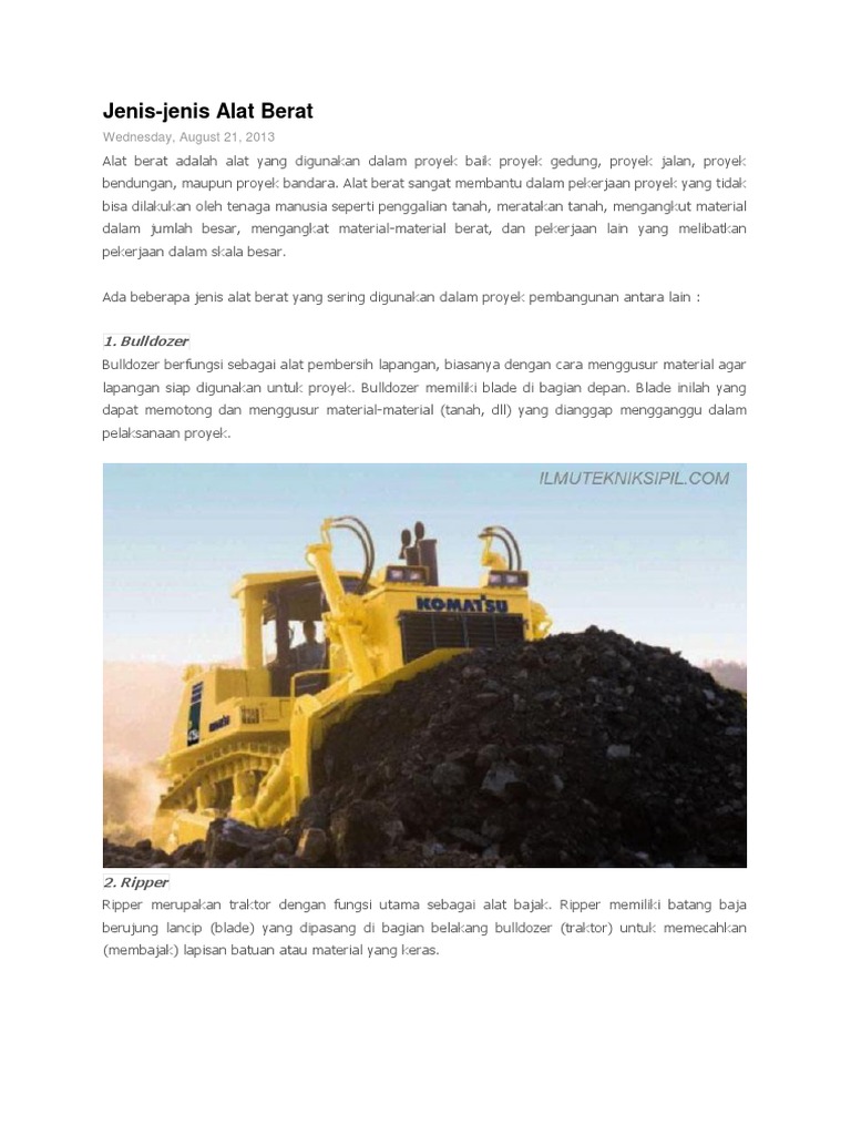 Alat Berat Yang Digunakan Untuk Membajak Lapisan Batuan Atau Material Yang Keras Dinamakan