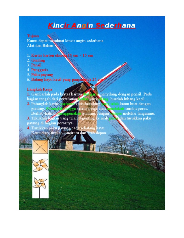 Kertas lipat kertas origami 2. Kincir angin membutuhkan sumber energi dari angin dimana angin adalah sumber daya alam yang tak akan habis maka sangat menjadi pilihan untuk warga juga dalam memilih untuk membangkitkan listrik. Penjelasan lebih lanjut adalah sebagi berikut. Ada beberapa wilayah yang menggunakan kincir angin tidak hanya sebagai pembangkit listrik ataupun pemanfaatan dalam saluran irigasi namun juga untuk dekorasi dan hiasan pada rumah.