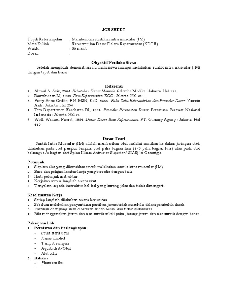 Dahulu pemberian injeksi intramuskular hanya dilakukan menggunakan jarum suntik. Sedangkan pembuluh darah vena adalah pembuluh darah yang menghantarkan. Sop pemberian obat melalui injeksi intramuskular im alat dan bahan. Academia edu is a platform for academics to share research papers.