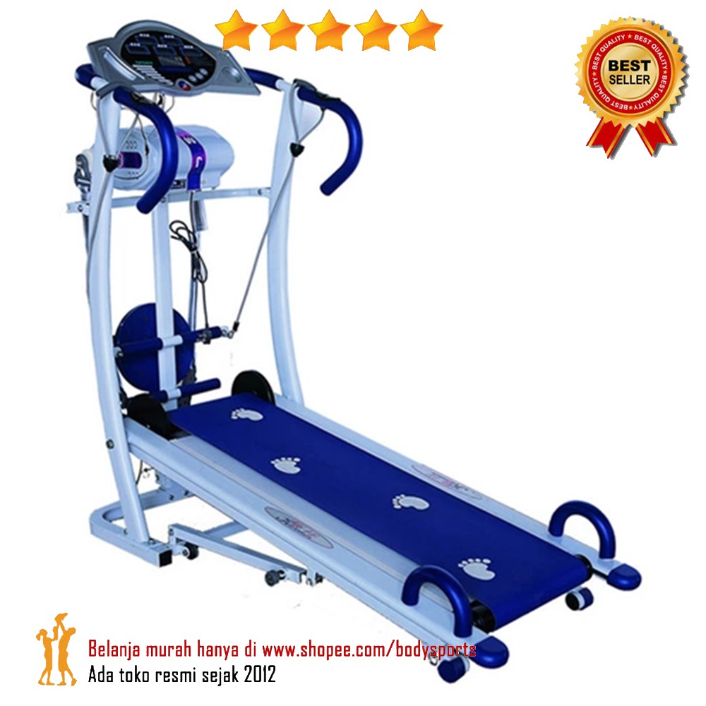 Treadmill adalah alat kebugaran yang berfungsi untuk melakukan olahraga seperti berlari dengan adanya alat ini kamu tidak perlu keluar rumah untuk berolahraga cukup menghidupkan dan mengatur kecepatan pada mesin kamu sudah bisa berlari di atas alat ini. 6 fungsi jogging lari treadmill tali ropper stepper twister dan push up pulling dilengkapi hand pulse untuk sensor denyut nadi jantung. Berolahraga menggunakan alat ini di rumah bisa kamu lakukan setiap saat impian kamu menurunkan berat badan kini tidak lagi hanya menjadi. Segera beli yuk alat olahraga lari di rumah.