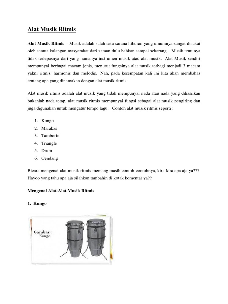 Alat Musik Ritmis Adalah Alat Musik Yang Tidak Mempunyai