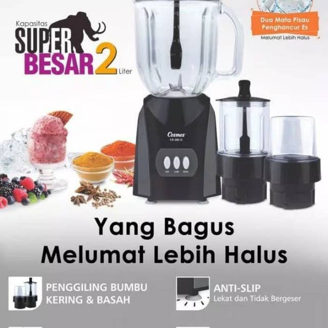 Kalau anda membutuhkan blender yang lengkap cosmos blenz cb 802 adalah pilihan terbaik. Apalagi blender merk cosmos memiliki kualitas mutu yang bagus. Blender biasa digunakan untuk membuat jus dan menghaluskan makanan. Model dan mereknya pun beragam mulai dari sharp philips oxone dan merek lainnya.