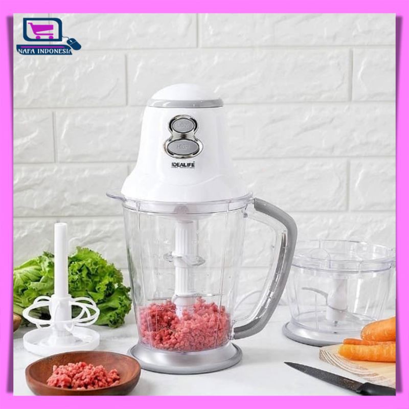 Blender daging ukuran besar. Karena umumnya blender menggunakan wadah yang lebih tinggi bila dibandingkan food processor. Sementara untuk kegunaan blender sebenarnya lebih cocok digunakan untuk menyiapkan atau mencampur minuman. Mesin cacah bakso stainless watt kecil kapasitas besar. Alat ini termasuk cukup sering digunakan di rumah.