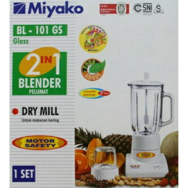 Blender kaca miyako bl 102 gs miyako blender bl 102gs ini dapat membantu anda untuk menyiapkan bahan masakan dan membuat berbagai jus yang anda sukai. 250 watt kapasitas 1 liter jar bahan plastik terdapat dry mill wet mill aman digunakan garansi resmi miyako 1 tahun blender miyako. Jual miyako blender plastik dry mill bl 101 pl dengan harga rp221 850 dari toko online miyako jakarta barat. Blender ini dilengkapi dengan dry mill wet mill bahan container gelas.
