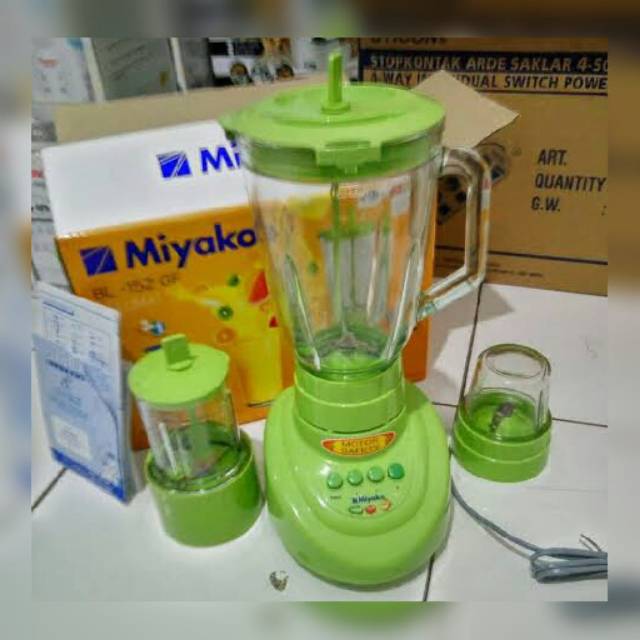 Blender miyako bl 152 gf membantu anda dalam mengolah bahan bahan makanan yang anda perlukan menggiling bumbu masak pun menjadi lebih mudah dari sebelumnya dengan hasil yang higienis akan menjaga kebersihan makanan anda. Miyako blender 3 gelas bl 152 pf ap star farm rp 371 000 star farm 4 7 5 indonesia sale miyako blender blender bl 301 pl ap rp 375 000 43 rp 210 900 surya group 4 8 5 indonesia miyako blender 4 7. Blender ini memiliki kapasitas 1 liter serta motor berdaya 300 w yang kuat dan tahan lama. Isi master box.