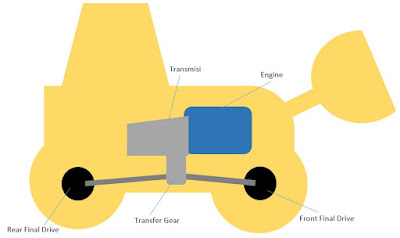 Ada lima komponen yang terdapat pada alat berat yaitu implemen alat traksi struktur sumber tenaga dan transmisinya serta sistem kendali.