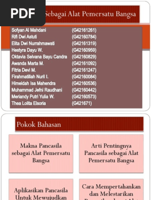 Disebutnya sila persatuan indonesia sekaligus juga menunjukkan bahwa bangsa indonesia memiliki perbedaanperbedaan. Pancasila merupakan sumber acuan utama negara kesatuan republik indonesia atau bisa disebut sebagai dasar dasar negara indonesia. Indonesia merupakan negara yang luas dengan kondisi geografis kepulauan yang terpisah satu sama lain. Nusantaranews co makna pancasila sebagai pemersatu bangsa sesungguhnya sudah terbentuk pada waktu kongres pemuda pada tanggal 28 oktober 1928 yaitu dengan sumpah pemuda yang mendeklarasikan tumpah darah yang satu tanah indonesia.